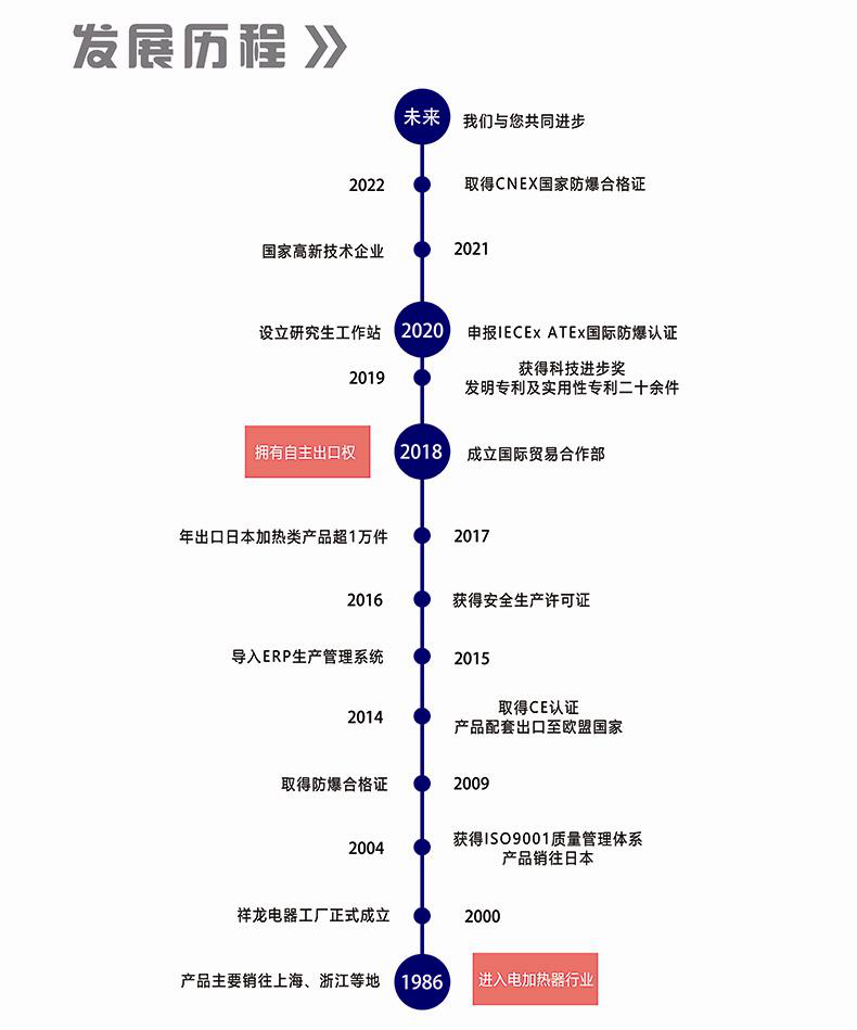 祥龍電器是一家具有研發能力的制造廠家,自1986年以來,產品銷往全國各地以及日本、韓國、歐美、東南亞等國家。我們提供的不僅僅是產品,我們幫助客戶提供電加熱器的解決方案。我們產品在電力、冶金、金屬制品、化工、再生新能源等領域得到廣泛運用。在保證性能的同時,為客戶提供更有效、更經濟的解決方案。